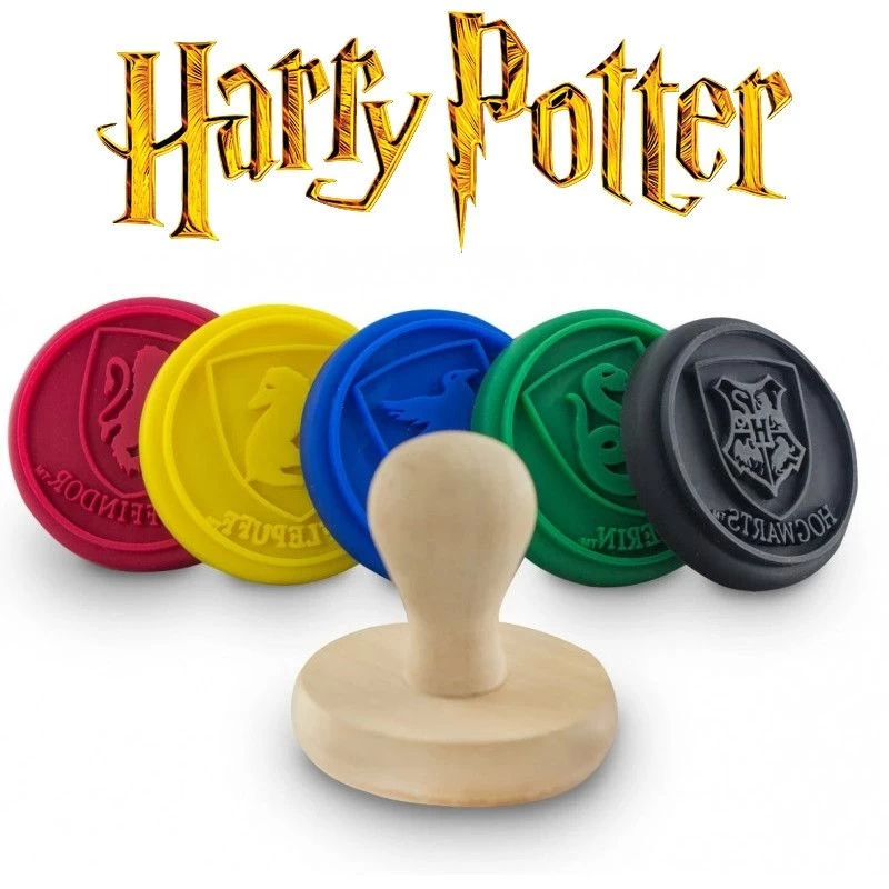Officially licensed Harry Potter Cookie Stamp with 5 interchangeable silicone stamps (Hogwarts, Gryffindor, Slytherin, Ravenclaw, Hufflepuff)
