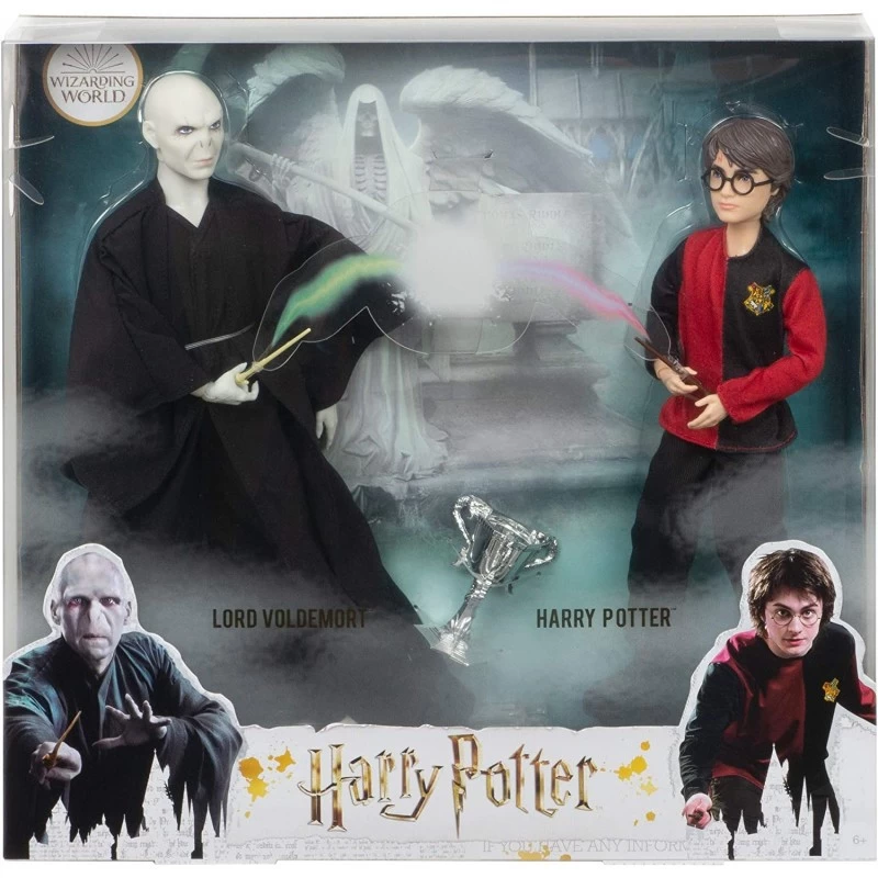 HARRY POTTERHARRY POTTER & VOLDEMORT ACTION FIGURES COLLECTOR’S SET Recreate the epic duel between Harry Potter and Lord Voldemort with this collectible 2-pack of figures from the Harry Potter and the Goblet of Fire movie!Accessories include the Sorcerer’s Cup and a personalized wand to figurine.With robes made of real fabric and articulated at the neck, shoulders, hips, knees, elbows and wrists, the Harry Potter and Voldemort figurines are ready for action and magical poses!The box specially designed recreates the cemetery scene of the Riddle estate.