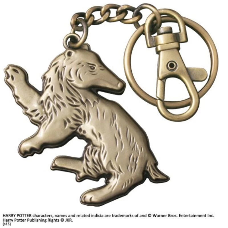 This base metal keychain, shaped in the Hufflepuff bear house logo, is approximately 2.75 inches in height and comes in a four colour box.